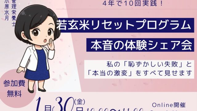 若玄米リセットプログラム 4年で10回挑戦して分かった「若玄米リセットプログラム」で結果が出る人と、空回りで終わる人の決定的な違い 2026年1月24日 oharamizuki http://oharamizuki.com/wp-content/uploads/2021/12/aa8e475ab65c1ac81bd650c2d6eaf6e6.png 小原水月公式ブログ