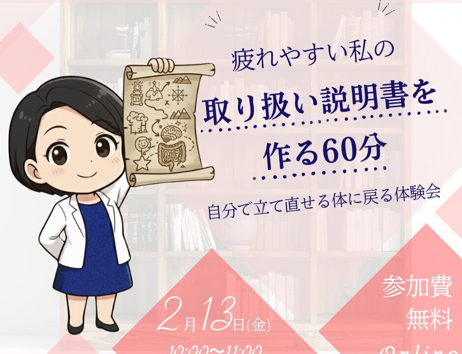 先日開催した、「疲れやすい私の取り扱い説明書を作る60分〜自分で立て直せる体に戻る体験会〜」。